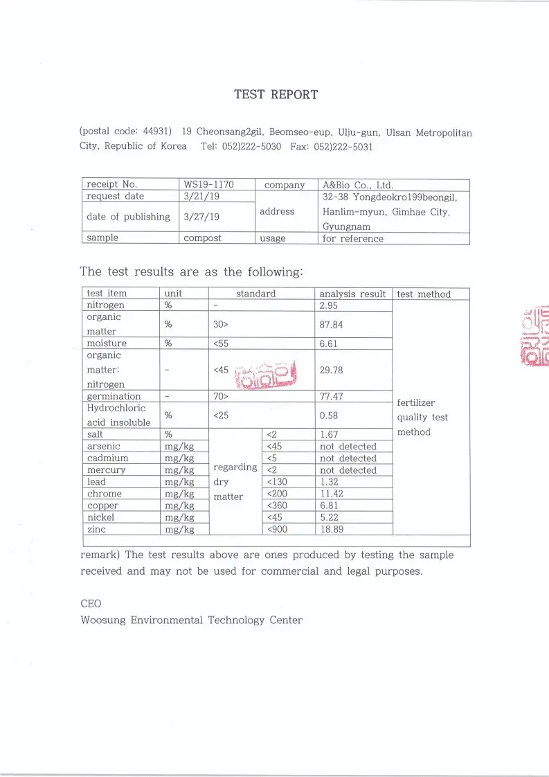 ● Temperature: Reencle operates at a minimum of 55°C (131°F), the optimal temperature for activating its thermophilic (heat loving) microbes. This heat level ensures that harmful bacteria cannot survive within the system. Our tests confirm the absence of dangerous microbes in the compost produced.